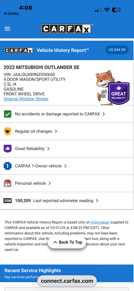Your car comes freshly Detailed and a fresh Synthetic Oil Service